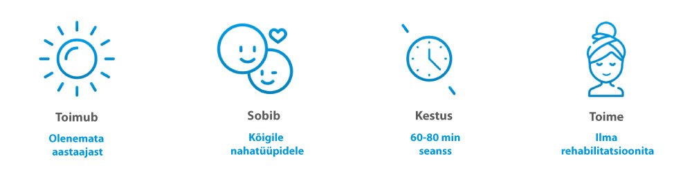 Täielikuma ja püsivama noorendusefekti saavutamiseks soovitame 4-6 protseduurist koosnevat kuuri 7-10-päevase intervalliga.