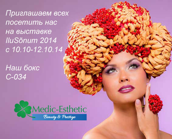 Medic-Esthetic учавствует в выставке IluSõnum 2014 c 10 — 12 октября! Посетите наш стенд С-034! Ждем вас! Будут предлагаться скидки на многие процедуры!